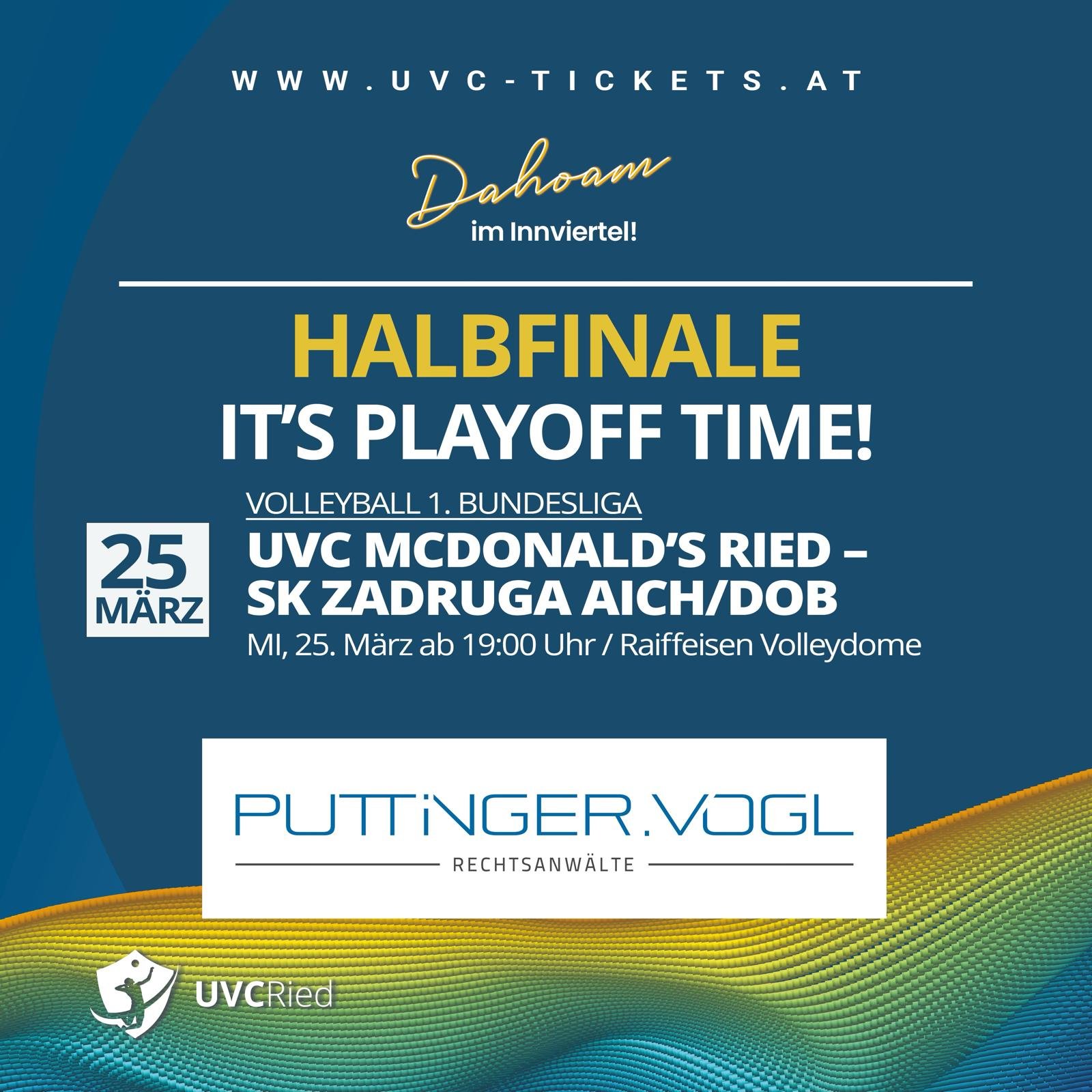 Bereits am Mittwoch, den 25. März, hat der UVC McDonalds Ried die Chance in der Serie auszugleichen. Um 19:00 Uhr beginnt das erste Halbfinal-Heimspiel dahoam im Raiffeisen Volleydome powered by Puttinger Vogl Rechtsanwälte.